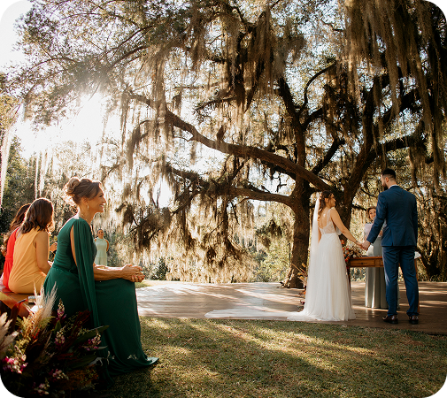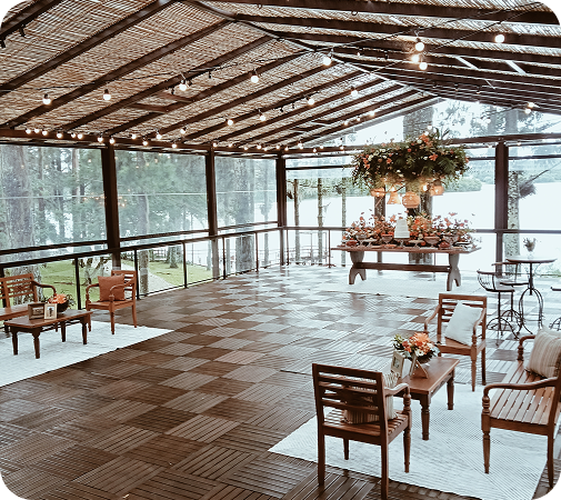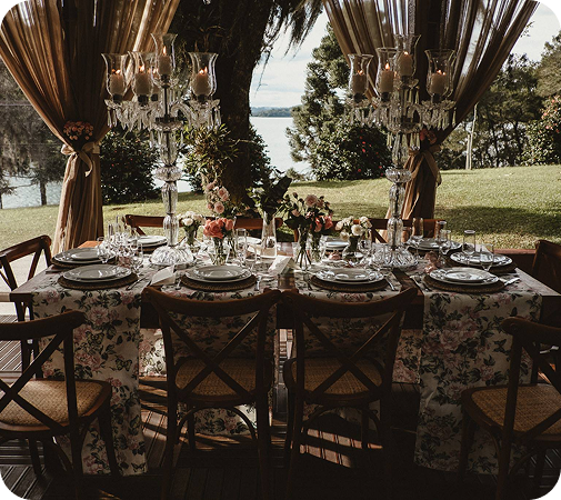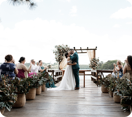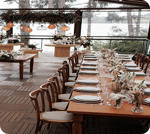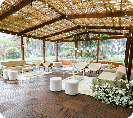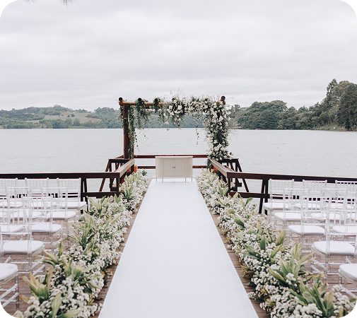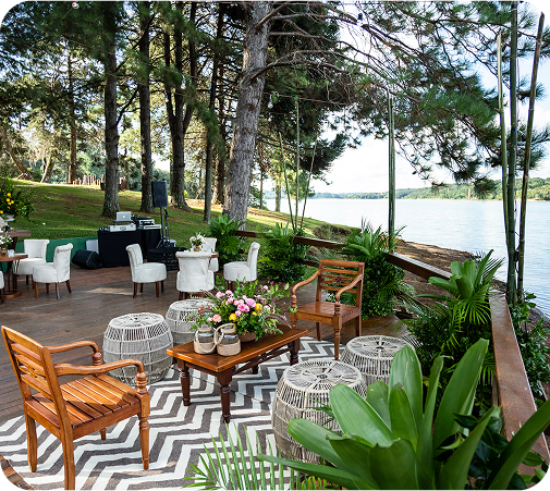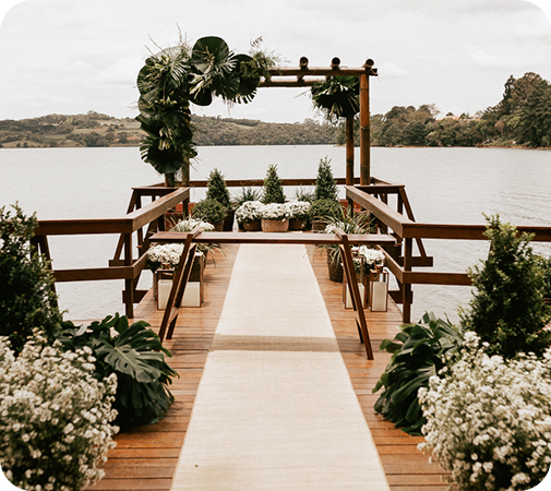 Sim, possuímos dois espaços cobertos que é possível realizar a cerimônia. O Deck Coberto e a Varanda do Lago.